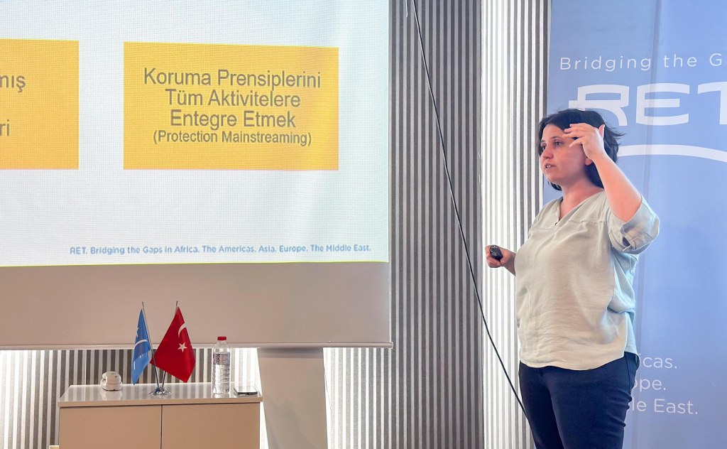 Following Ms. Andrews, Ms. Iraz Yıldırım, the protection specialist at RET and an experienced developmental psychologist, conducted an insightful session on humanitarian standards and basic protection principles. Her training covered safe case referrals, the accountability of affected populations, and the procedures for preventing sexual exploitation, abuse, and sexual harassment (PSEASH).