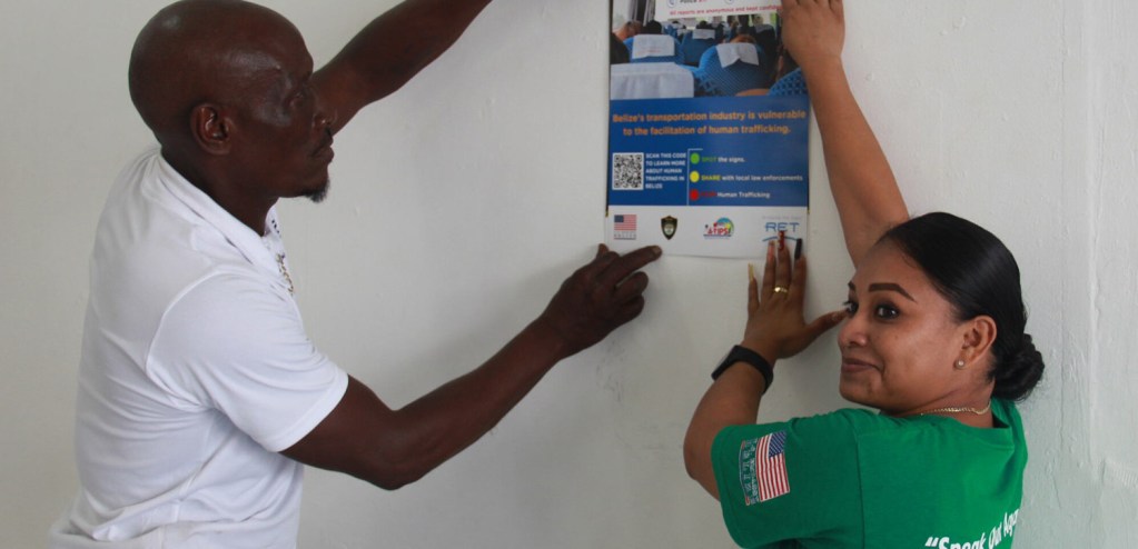 As part of Objective 2 for this project, the RET team partnered with representatives from Civil Society Organizations (CSOs) in Belize to distribute educational material with information geared towards preventing instances of human trafficking within the transport sector.